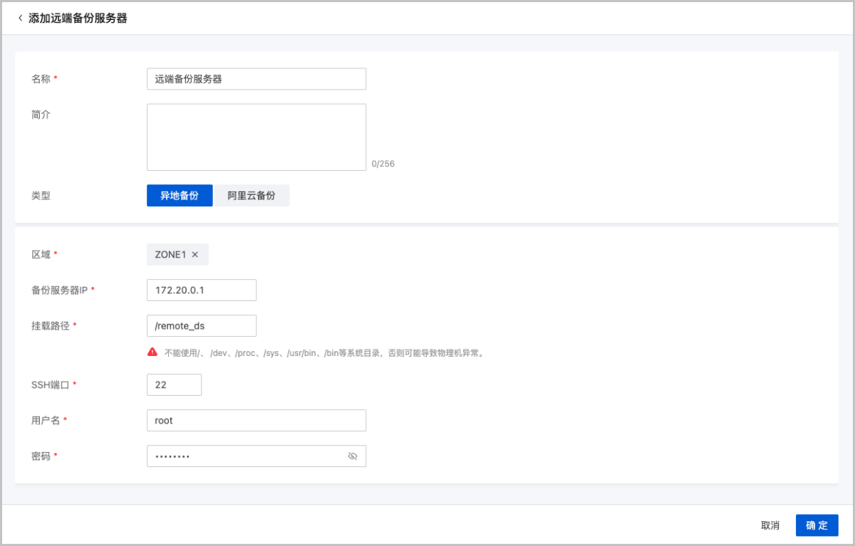 | 远端备份服务器 | 配置信息 |