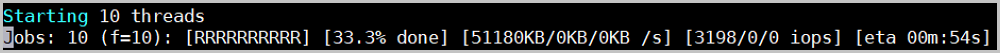 fio -filename=/tmp/test -direct=1 -iodepth 1 -thread -rw=read -ioengine=psync -bs=16k -size=4G -numjobs=10 -runtime=80 -group_reporting -name=mytest