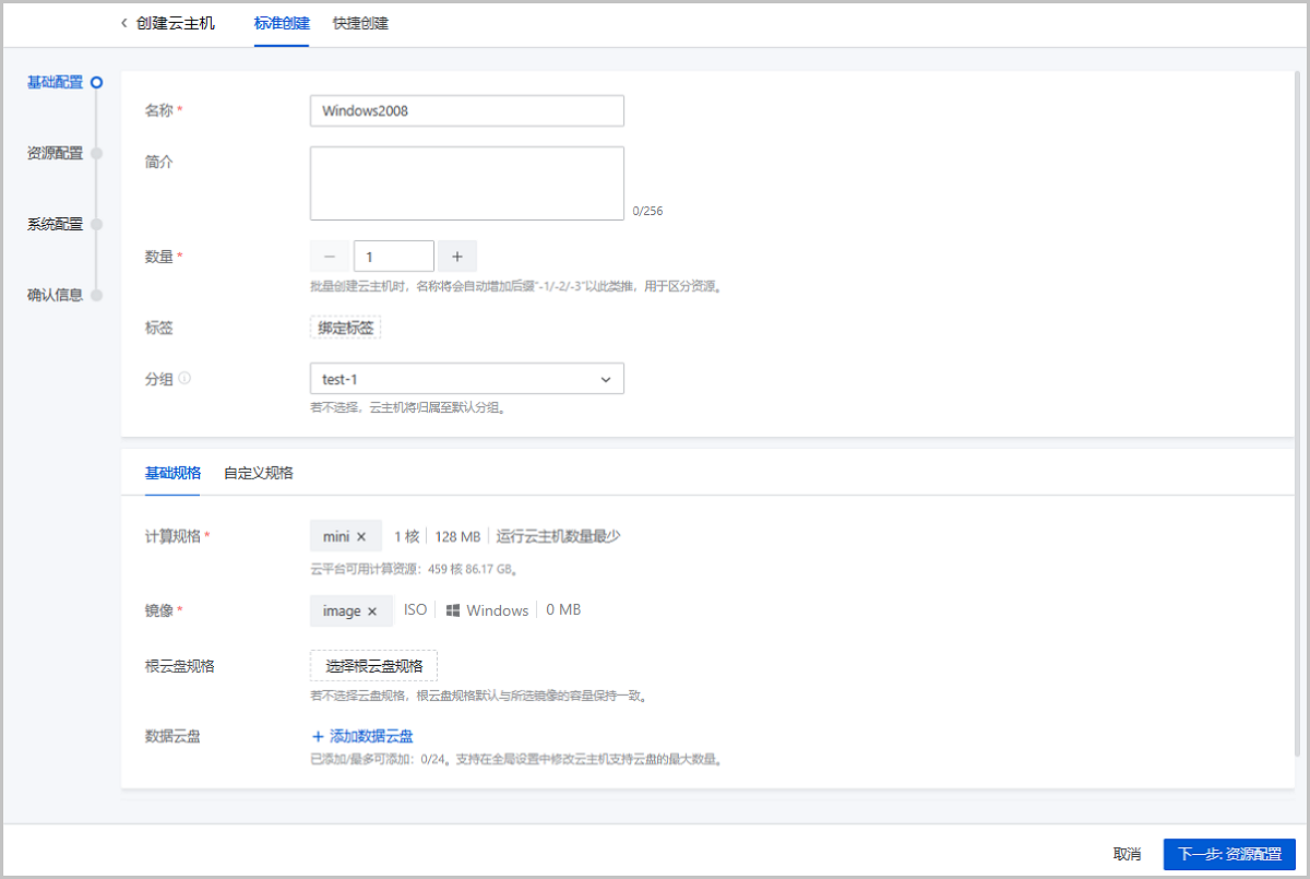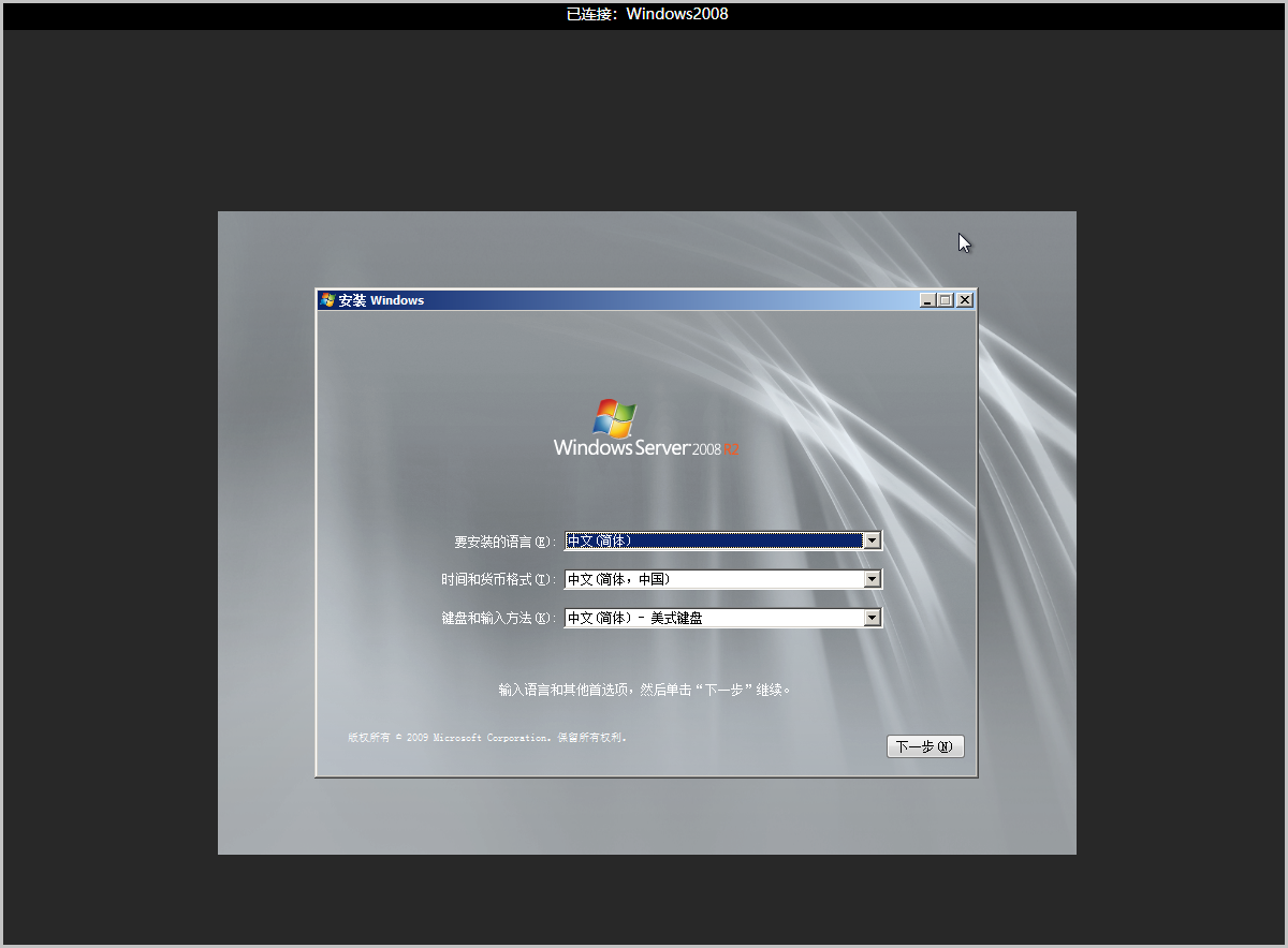 使用添加的Windows Server 2008 R2镜像创建云主机并安装操作系统。